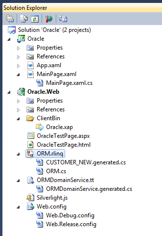 public partial class ORMDomainService{ protected override ORMDbContext CreateDataContext() { XmlMetadataSource metadataSource = XmlMetadataSource.FromAssemblyResource("ORM.rlinq"); string connectionString = string.Empty; BackendConfiguration dbConfig = new BackendConfiguration(); if (useMssql) { connectionString = "MsSqlConnectionString"; dbConfig.Backend = "mssql"; } else { connectionString = "OracleConnectionString"; dbConfig.Backend = "oracle"; } return new ORMDbContext (connectionString, dbConfig, metadataSource); }}Greetings,