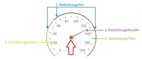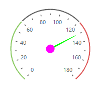 In order to make the dot colored differently, I can suggest you to add a second needle just for showing the dot. I have prepared a sample code snippet for your reference which result is illustrated below: