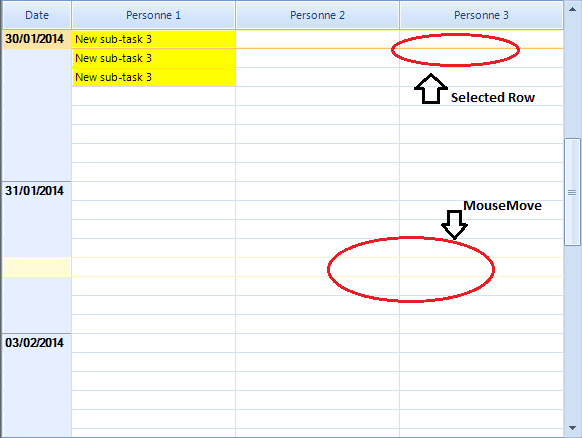 I would like to change the color of the horizontal grid lines for selected row and in MouseMove event (remove orange color)