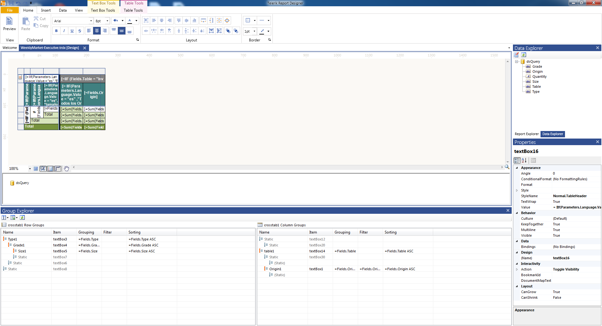 I have a Cross Tab Report with Three Fields assigned to its Row Groups. I also Set Interactivity action to toggle group's visibility on runtime. However setting visbility of the first Row Group to off would also collapse all the subsequent row groups. Technically logical, but I want to know if there is a way to do it so the row groups can be toggled on/off with the remainder of the groups show aggregate data.Look at attached screenshots.