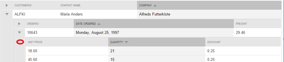 I would require some more help. In the above link, the columns: order id, Date Ordered, Employee Id are inside the gridtableview.