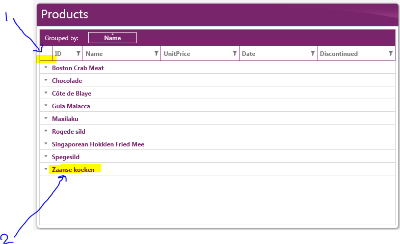 2. Whenever i drag the column header to group panel the Font size and color gets change. i want to change these colors in xaml.
