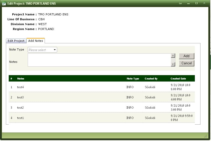 <div id="div1" style="width: 100%; overflow: auto; overflow-x: hidden"> <table class="customFont" width="98.5%"> <tr id="tr1" runat="server"> <td align="right"> <asp:Button Text="Add Note" runat="server" ID="Button1" OnClientClick="return showAddNotes()" /> </td> </tr> <tr style="display: none; position: relative" id="tr2"> <td> <table style="background-color: #F5F5E9" cellspacing="2"> <tr> <td align="left" style="width: 70px;"> Note Type </td> <td align="left" style="width: 82px; height: 24px;"> <telerik:RadComboBox ID="RadComboBox1" EmptyMessage="Please select" runat="server" MarkFirstMatch="True" CollapseDelay="0" Width="115px" DropDownWidth="100px" AllowCustomText="True"> <CollapseAnimation Duration="0" /> </telerik:RadComboBox> <asp:RequiredFieldValidator InitialValue="" ValidationGroup="Notes" ID="RequiredFieldValidator1" runat="server" ControlToValidate="ddlNoteType" ClientValidationFunction="ddlNt" Display="None" ErrorMessage="Please select Note Type."></asp:RequiredFieldValidator> <cc2:ValidatorCalloutExtender ID="ValidatorCalloutExtender1" TargetControlID="custValCou" runat="server" Enabled="True"> </cc2:ValidatorCalloutExtender> </td> <td> </td> </tr> <tr> <td align="left" valign="middle" style="width: 70px;"> Notes </td> <td align="left"> <asp:TextBox ID="TextBox1" runat="server" TextMode="MultiLine" Rows="3" Width="570px"></asp:TextBox> <asp:RequiredFieldValidator ID="RequiredFieldValidator2" ValidationGroup="Notes" ControlToValidate="txtNoteDesc" Display="None" runat="server" ErrorMessage="Please enter Notes."></asp:RequiredFieldValidator> <cc2:ValidatorCalloutExtender ID="ValidatorCalloutExtender2" TargetControlID="valCliID" runat="server"> </cc2:ValidatorCalloutExtender> </td> <td valign="top"> <div style="padding-bottom: 4px;"> <asp:Button ID="Button2" Width="60px" OnClick="btnAddNote_Click" ValidationGroup="Notes" runat="server" Text="Add" /></div> <asp:Button ID="Button3" Width="60px" runat="server" OnClientClick="return hideAddNotes()" Text="Cancel" /> </td> </tr> </table> </td> </tr> <tr> <td> </td> </tr> <tr> <td> <telerik:RadGrid ID="RadGrid1" GridLines="None" AllowSorting="false" Width="100%" runat="server" AutoGenerateColumns="false" ShowFooter="false" ShowGroupPanel="false" ShowStatusBar="false" EnableEmbeddedSkins="false" HeaderStyle-HorizontalAlign="Left" ItemStyle-HorizontalAlign="Left" Font-Size="7.5pt" BorderColor="White" BorderWidth="0" BorderStyle="None"> <HeaderStyle BackColor="#004000" ForeColor="White" Font-Size="7.5pt" Font-Bold="True" HorizontalAlign="Left" BorderColor="White" /> <ItemStyle BorderStyle="None" /> <AlternatingItemStyle BorderStyle="None" /> <AlternatingItemStyle BackColor="#F5F5E9" /> <MasterTableView> <Columns> <telerik:GridBoundColumn HeaderText="#" DataField="rowNum" HeaderStyle-Width="12px" ItemStyle-Width="12px"> </telerik:GridBoundColumn> <telerik:GridBoundColumn ReadOnly="true" HeaderStyle-Width="413px" ItemStyle-Width="413px" UniqueName="Notes" HeaderText="Notes" DataField="Notes"> </telerik:GridBoundColumn> <telerik:GridBoundColumn UniqueName="Type Description" HeaderStyle-Width="57px" ItemStyle-Width="57px" HeaderText="Note Type" DataField="Type Description" ReadOnly="true"> </telerik:GridBoundColumn> <telerik:GridTemplateColumn HeaderText="Created By"> <ItemTemplate> <asp:Label ID="lblCreatedBy" runat="server" Width="78px" Text='<%# Bind("CreatedBy") %>'></asp:Label> </ItemTemplate> </telerik:GridTemplateColumn> <telerik:GridBoundColumn UniqueName="CreationDate" HeaderText="Created Date" DataField="CreationDate" ReadOnly="true"> </telerik:GridBoundColumn> </Columns> <NoRecordsTemplate> No notes are avaliable</NoRecordsTemplate> </MasterTableView> <ClientSettings> <Scrolling AllowScroll="True" UseStaticHeaders="True" ScrollHeight="220px" SaveScrollPosition="True"> </Scrolling> </ClientSettings> </telerik:RadGrid> </td> </tr> </table></div>function showAddNotes(sender, args) { document.getElementById('trAddNewNotes').style.display = "block"; document.getElementById('ctl00_PagePlaceholder_winBlkTskAssign_C_tabTskAssign_TabNotes_trNotes').style.display = "none"; var scrollArea = sender.GridDataDiv; var parent = $get("div1"); var gridHeader = sender.GridHeaderDiv; scrollArea.style.height = "120px"; return false; }