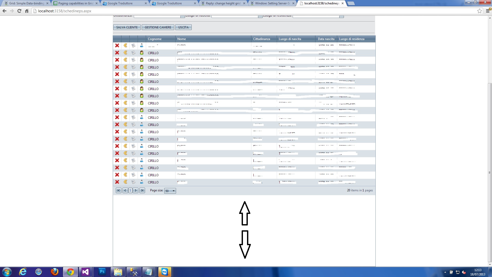 Protected Sub RadGrid1_PageSizeChanged(sender As Object, e As GridPageSizeChangedEventArgs) Handles RadGrid1.PageSizeChanged RadGrid1.DataSource = read.GetSchedineData(1, "15-07-2013") RadGrid1.Rebind()End Sub