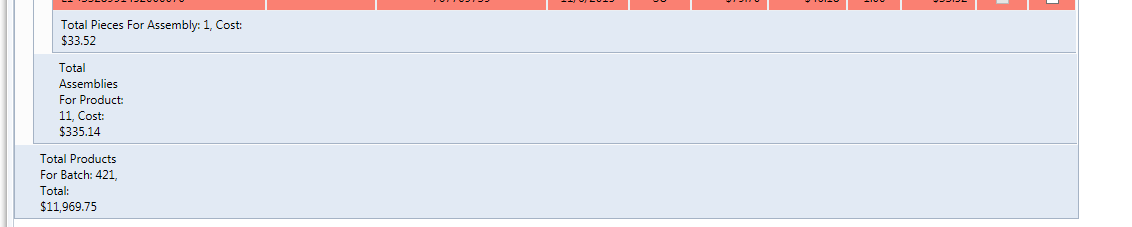 In the ItemDataBound event for the grid, I am capturing various metrics for each GridDataItem which I am then converting into a text value. The purpose is to give the operator some detailed information for each of the levels (e.g. "based on current inventory levels, we can only produce 5 of this assembly before Part ### is exhausted")