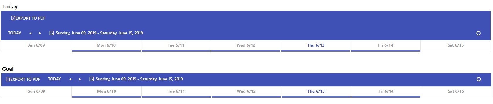 I would like to change the "Export PDF" position to stand next to the "Today" button, as shown in the attached image. This would make the blue bar smaller.