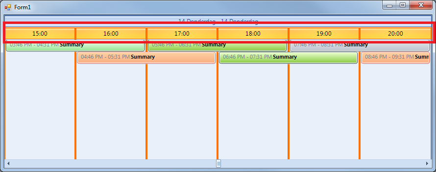 DateTime focusedDate = DateTime.Now;int startHour = focusedDate.Hour;int endHour = startHour + 6;radScheduler1.FocusedDate = focusedDate;radScheduler1.ActiveViewType = SchedulerViewType.Timeline;SchedulerTimelineView timelineview = radScheduler1.GetTimelineView();timelineview.ShowTimescale(Timescales.Hours);DateTime startDate = timelineview.StartDate.Date;timelineview.StartDate = startDate.AddHours(startHour);SchedulerTimescale timescale = this.radScheduler1.GetTimelineView().GetScaling();timescale.DisplayedCellsCount = endHour - startHour;I hope this information helps. Please do not hesitate to contact us if you have any additional questions.
