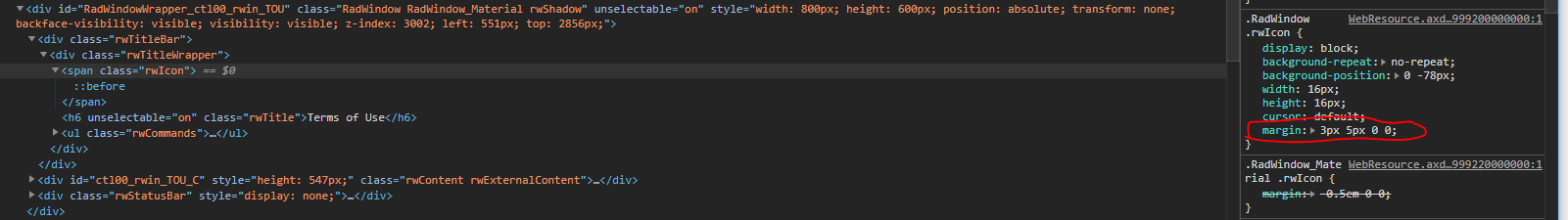 If I disable this in devtools everything looks good (Margin then inherited from .RadWindow_Material .rwIcon).