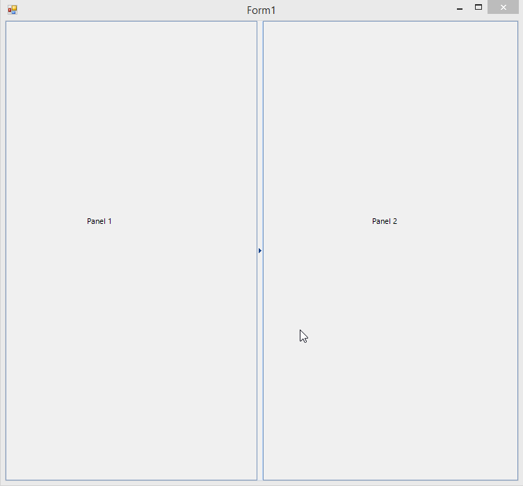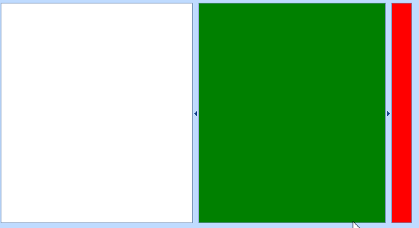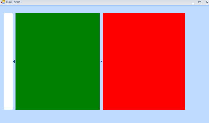 this.splitPanel3.SizeInfo.AbsoluteSize = new Size(30, 0);If you have only two SplitPanels, you will notice that the splitter direction is opposite compared to the case with three panels. Hence, you can collapse the yellow panel in this case:
