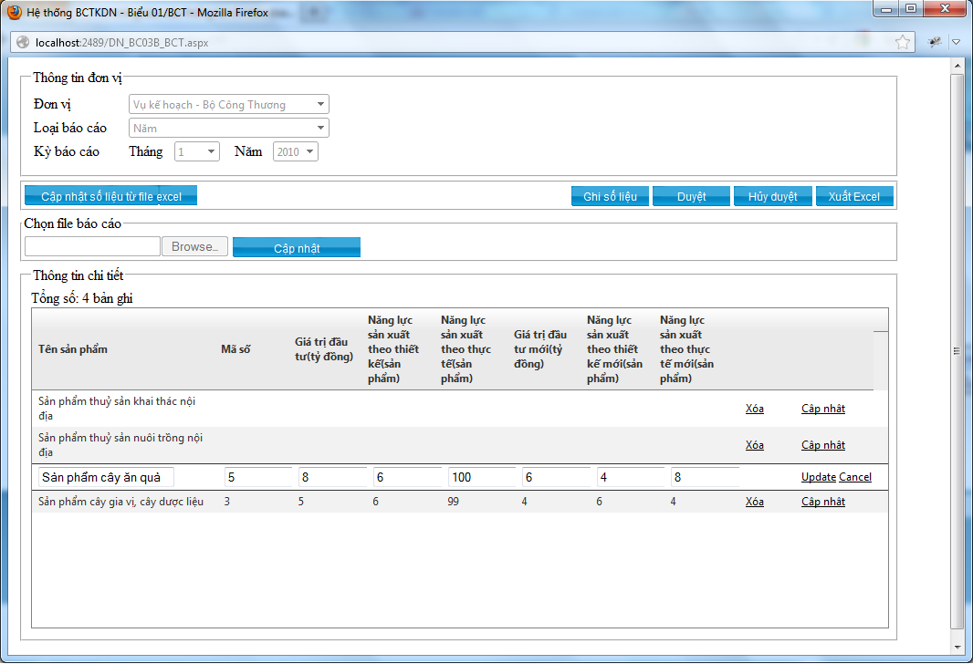 <telerik:RadGrid runat="server" ID="rgdThongTin" Height="350px" Width="100%" AutoGenerateColumns="false" GridLines="None" onneeddatasource="rgdThongTin_NeedDataSource" ondeletecommand="rgdThongTin_DeleteCommand" onupdatecommand="rgdThongTin_UpdateCommand" oninsertcommand="rgdThongTin_InsertCommand"> <MasterTableView DataKeyNames="STT" AllowMultiColumnSorting="True" Width="100%"> <Columns> <telerik:GridBoundColumn DataField="STT" UniqueName="STT" HeaderText="STT" Visible="false"> <HeaderStyle Width="0px" HorizontalAlign="Left" VerticalAlign="Middle" Font-Bold="True" /> <ItemStyle Width="0px" HorizontalAlign="Left" VerticalAlign="Middle" /> </telerik:GridBoundColumn> <telerik:GridEditCommandColumn ButtonType="LinkButton" UniqueName="EditCommandColumn" EditText="Cáºp nháºt"> <HeaderStyle Width="100px" HorizontalAlign="Left" VerticalAlign="Middle" Font-Bold="True" /> <ItemStyle Width="100px" HorizontalAlign="Left" VerticalAlign="Middle" /> </telerik:GridEditCommandColumn> </Columns> <EditFormSettings CaptionFormatString="Edit details for employee with" CaptionDataField="MA_SO"> </EditFormSettings> </MasterTableView> <ClientSettings AllowColumnsReorder="true" EnableRowHoverStyle="true"> <Selecting AllowRowSelect="true" /> <Scrolling AllowScroll="true" UseStaticHeaders="true" /> <ClientEvents OnRowDblClick="RowDblClick" /> </ClientSettings> </telerik:RadGrid>