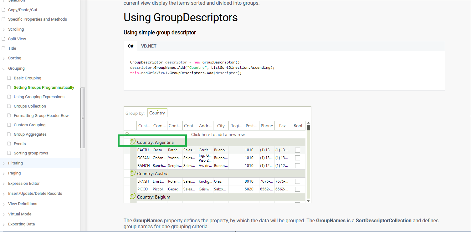 I am looking for a feature on the RadGridView which changes the Group value. As shown the attached screenshot, I want to change the value of the Country group from Argentina to Austria. After changing, the RadGridView will show the Country group of Austria with 5 rows within instead of showing 2 rows for Austria. Can you please help advise me for this feature? I am still searching in the forum while waiting for your response. Thank you very much.