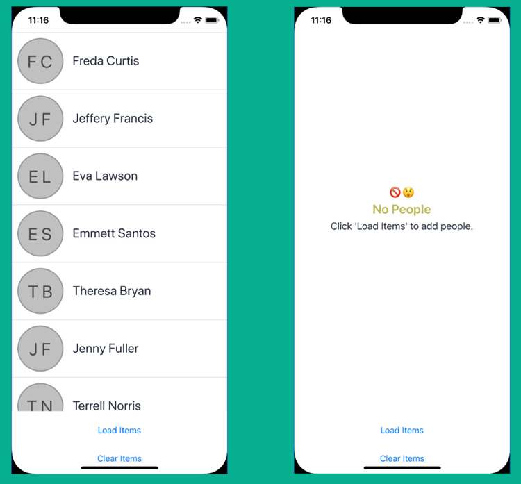 To help you get to a nice user experience that has both a "no items" element and a "busy spinner", I've built you a complete example (find it attached).