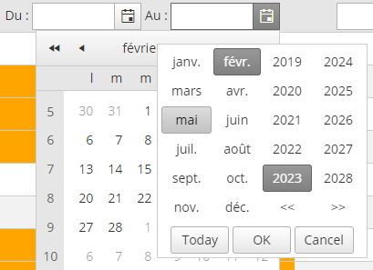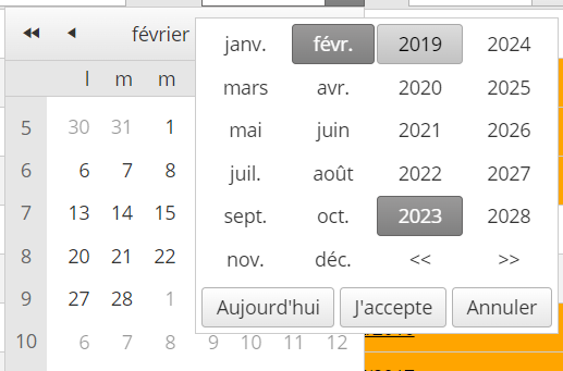 But, if I click on the selected month, I have another popup to choose month and years :