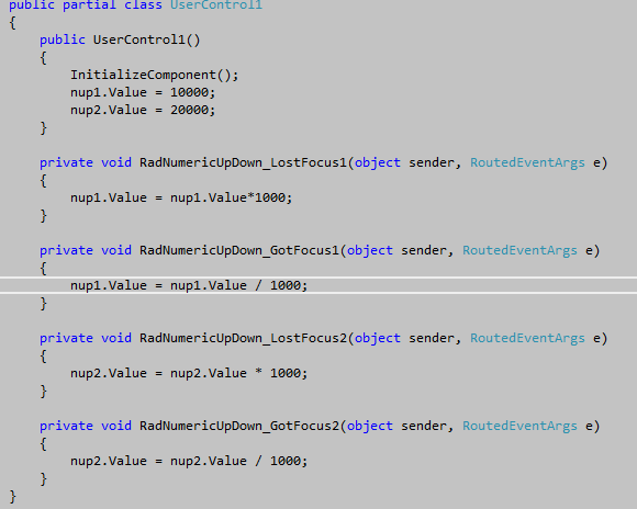 In GofFocus and LostFocus of NumericUpDown, I've changed the Value of NumericUpDown.