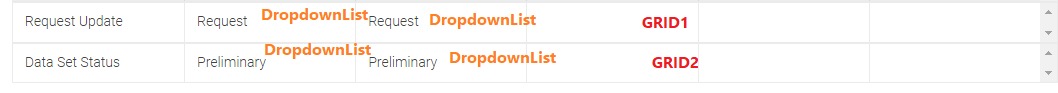 If we change value of Column1 dropdown in Grid1, it should change value of Column1 Dropdown in Grid2,