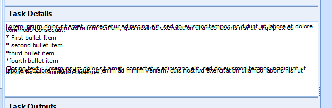 I also set the LayoutMode to "Flow". The problem that I'm running into is that in some instances the data in the DB is just one long string. When I set ChangeParagraphLineSpacing to a value >= 1.0 the word wrap works nicely. When ChangeParagraphLineSpacing < 1.0 it looks like the attached image. Is there any way to change the spacing so that it applies to paragraph breaks and lists but not the line spacing caused by word wrapping?