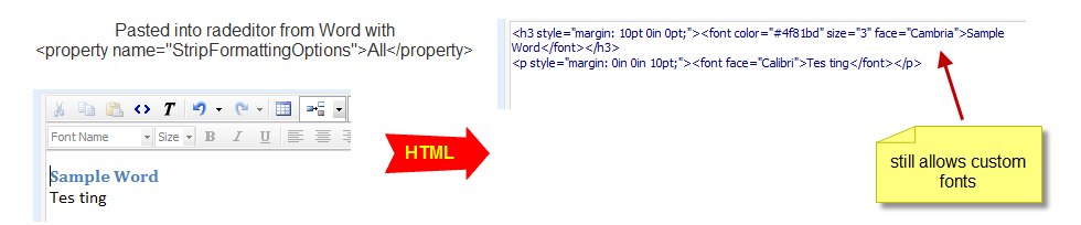 Also the MSWordRemoveAll property still allows alot of formatting across - like fonts that we do not support and do not appear in the dropdown.