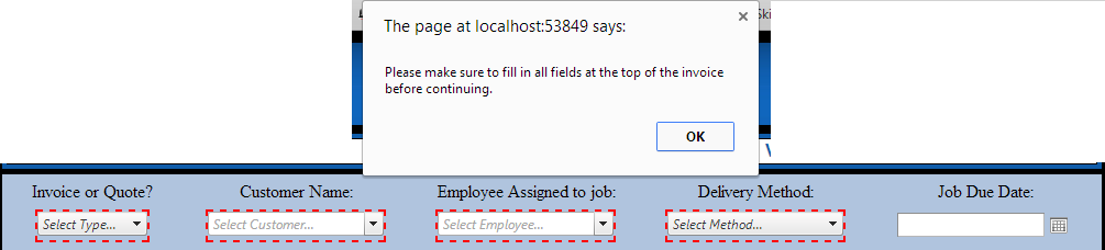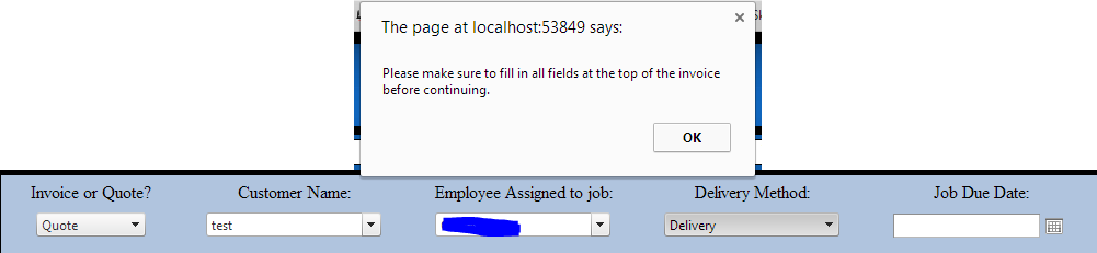 I know that the script is correctly checking the control for empty data because the alert still pops up if it is the only control that isn't populated with data.