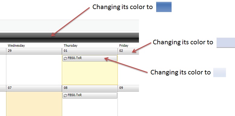 3) What you need is to use a custom AppointmentStyleSelector. In your selector provide a separate appointment style for recurring appointments. Please, check this help article for more details on the AppointmentStyleSelector.