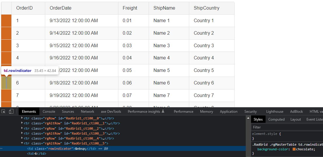 Is there a way to change the color the grid row selector? not the entire row or a column just the row selector. I would also like to know if a tooltip can be include on the row selector as well.