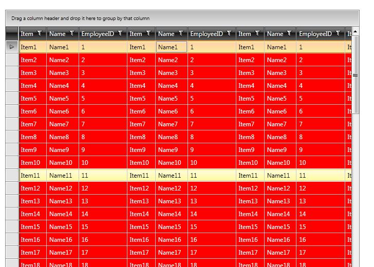 When i move the mouse above the gridview i get a yellow highlight, that causes the text to be unreadable.
