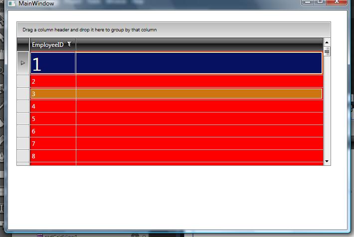 I am using RadGridView with IsMouseOver property. I want the row color as #CF7600 when mouse hovers on it. I have set the IsMouseOver property with background color. But when I put mouse on the row, for a fraction of second #CF7600 color shows up and turns back to light yellow (default color). Can you check this and tell me what the problem is.
