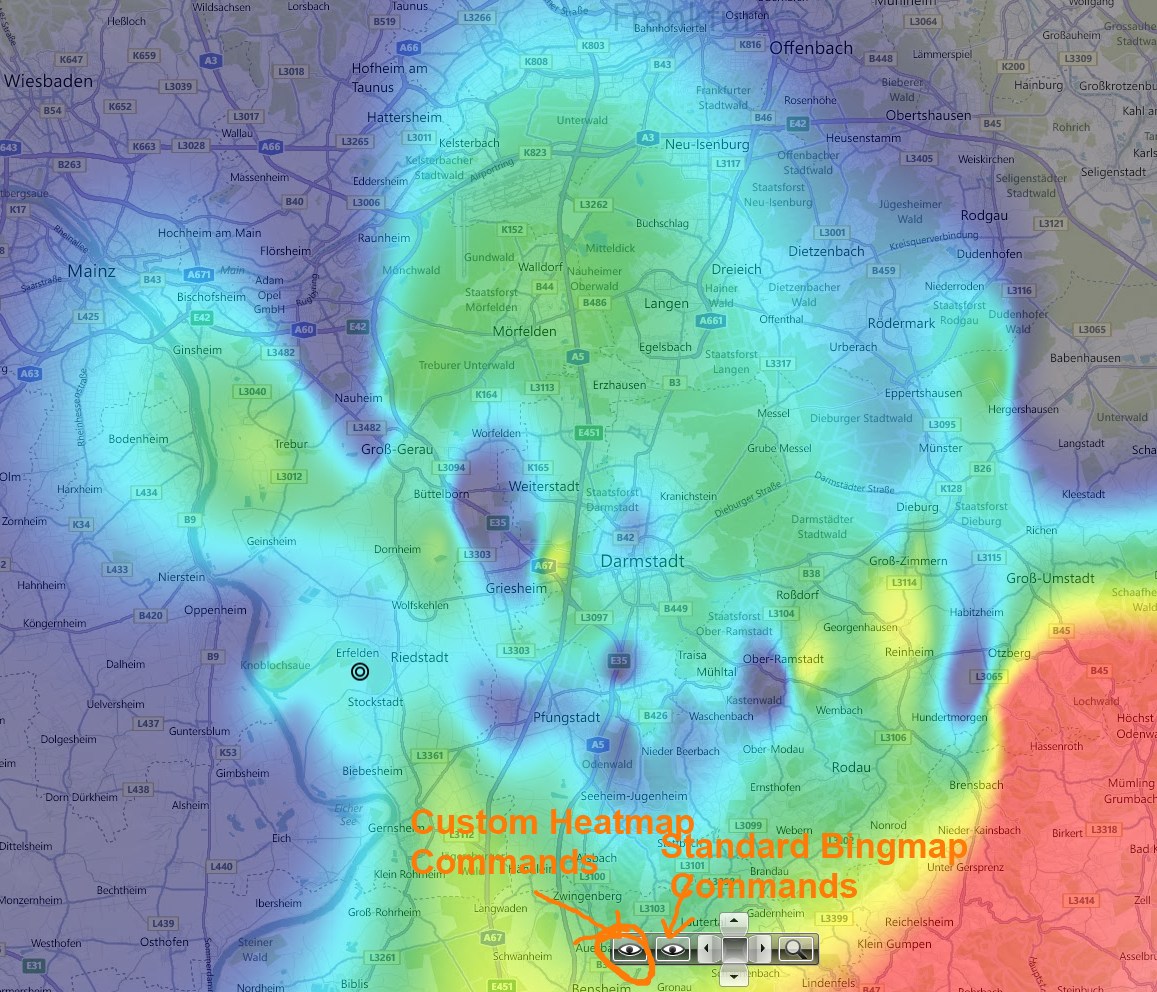 First of all, then I talk about a heatmap, I don't mean the shape-thingy which is provider by the map-control. In my case the heatmap is another TileProvider. I basically have two TileProviders (the Bingmap and our custom Heatmap one). Please take a look at the attached screenshot for better understanding.