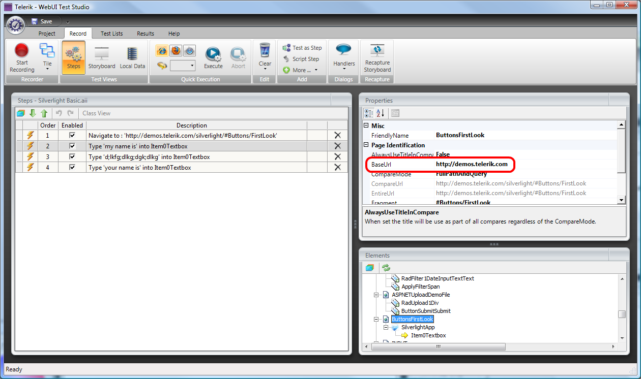 I tried to record a new test using the new url, and the test studio created a new instance of the silverlight application. Please see attached screenshot.
