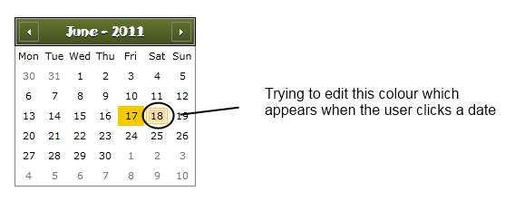 What i'm attempting to do is change the selection colour on the radcalendar - the colour that the user sees as a highlight (its light yellow in the default theme).