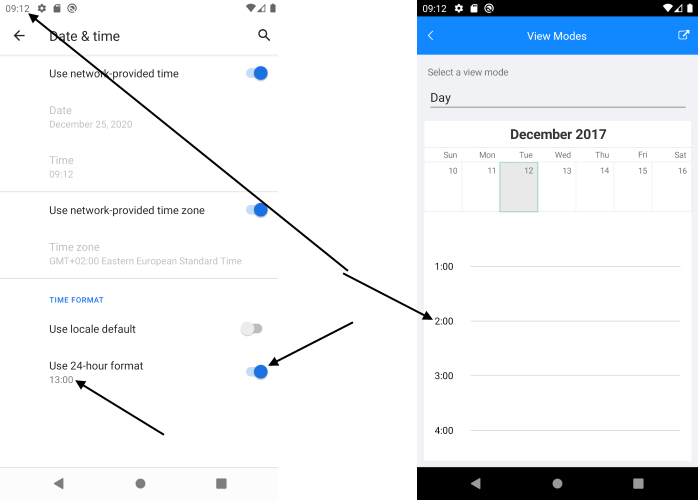 P.s.1. as the attached screenshots show, the time format doesn't match the OS time format settings, neither for UWP nor for Android.