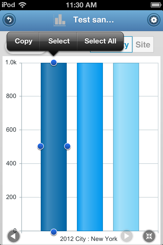I'm having an issue with charts when running my app on any IOS 6 device. When a user performs a "taphold" action (touching the screen and keeping the finger pressed for longer than a second) over an element, the element is highlighted in blue. Additionally, this action brings up the "copy/select/select all" context menu. I have attached some screenshots to demonstrate the problem.