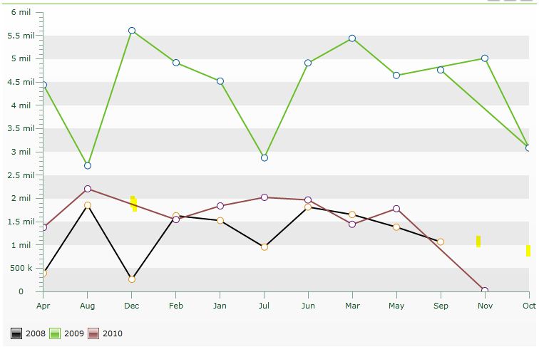 In the image see the black line it doesn't have data for months Nov and Oct so it braked at Sep