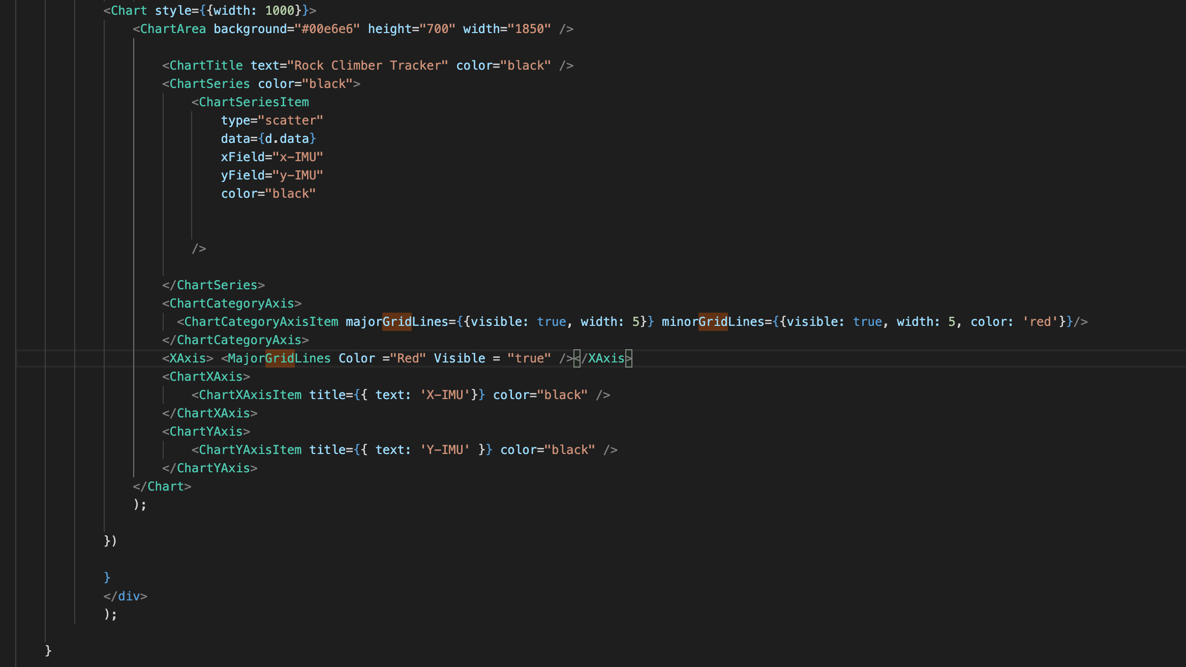 My grid lines is not displaying on my chart, The gridline API does not have a example on how to use it. Please let me know how to get grid lines on my chart.