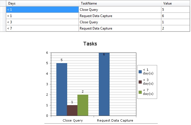 DataGroupColumn property is set to "Days" and DataLabelsColumn (PlotArea.XAxis.DataLabelsColumn) to "TaskName"... The data is correct but it is displayed under wrong labels.