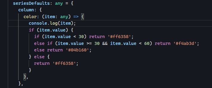 Hello, there is a conflict happen when I use seriesdefault to custom the colors of bars, the trendline dissapear, it exists but never show