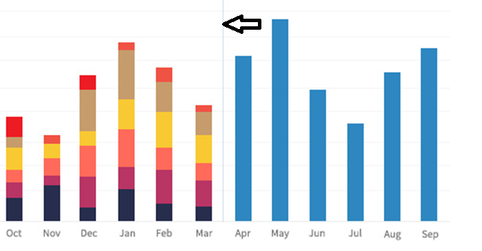 Stacked Grouped Chart : divide chart in two part on half yearly basis, a line shouls be used to divide the chart. attaching screen shot.