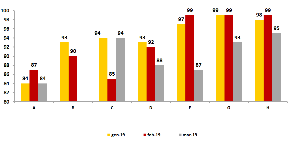 Each sector contains the two values of the various sub-groups of the related group.