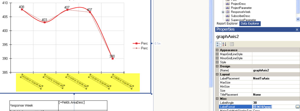 I have the x-axis as a date field. No matter how I adjust the formatting, it shows Date and Time as the label. I only want the DATE. I have used the following format strings but it totally ignores any settings: {0:d} and {0:M/d/yyyy}