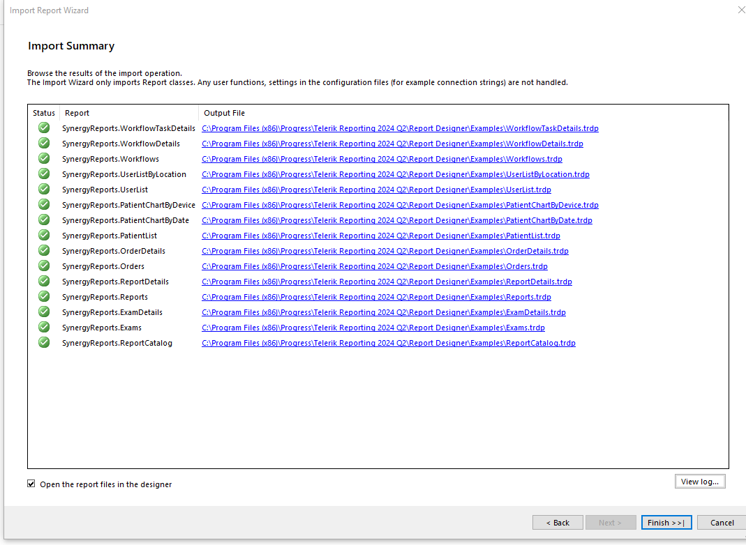 We made some progress and got past a big hurdle where it couldn't resolve the Reports DLL.