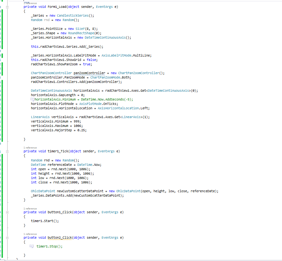 I would like create Finical chart to update real time data, let say every 1 second. I have create a small application with CandlestickSeries type and timer to add data point to chart. i also attached my code to this post.