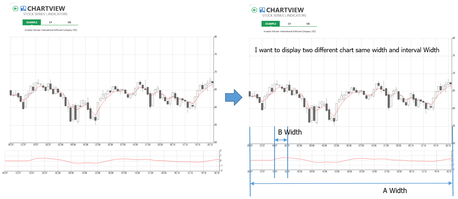 I want to display two differrent chart has same width and interval width
