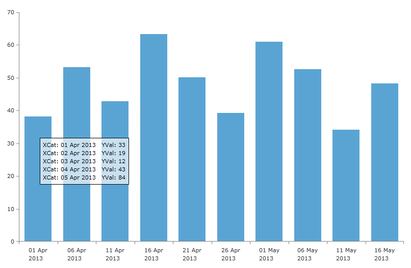My problem is now that the tooltip, which is defined in XAML, is no longer able to show information that was bound inside the ToolTipTemplate using <TextBlock Text={Binding DataItem.value} />. This was only possible when I assigned each BarSeries a Business object as ItemsSource, instead of using a ChartDataSource (which is necessary for sampling the data).