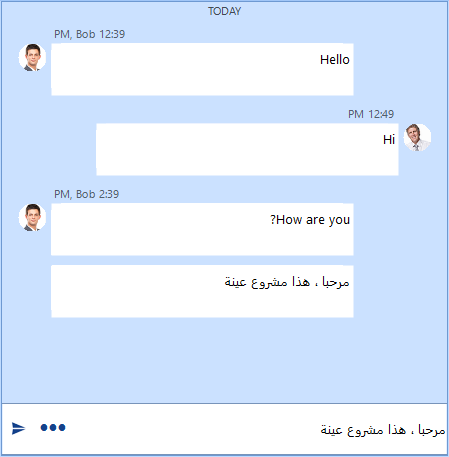The referred implementation in the KB article about selecting a text from the message and copying it, uses a RadTextBoxControlElement for the visual messages. Note that RadTextBoxControlElement doesn't support Right-To-Left functionality. That is why it is necessary to use RadTextBoxElement which internally hosts the standard MS TextBox and it supports RTL.