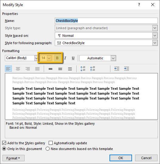 After mailmerge the Checkbox control in the output document looses its style when being manually triggered. Manually triggering checkbox in original template does not change original style.