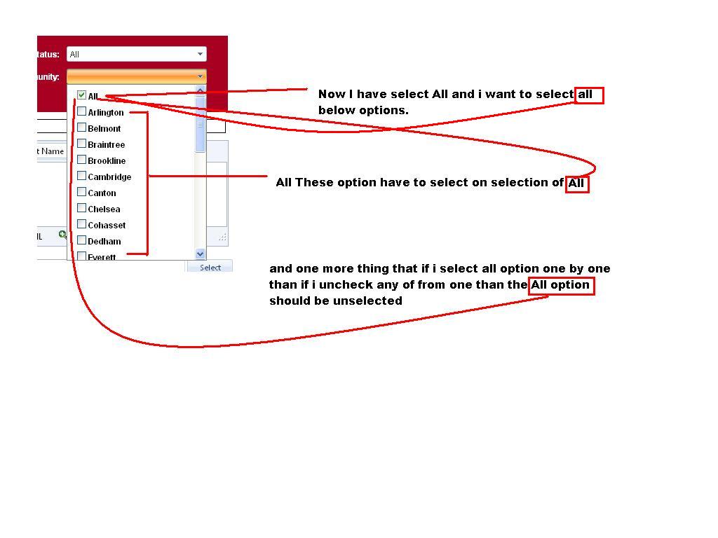 2.) If i select all options manually and that i have make any option as unselect than the option says ALL should become unselected.