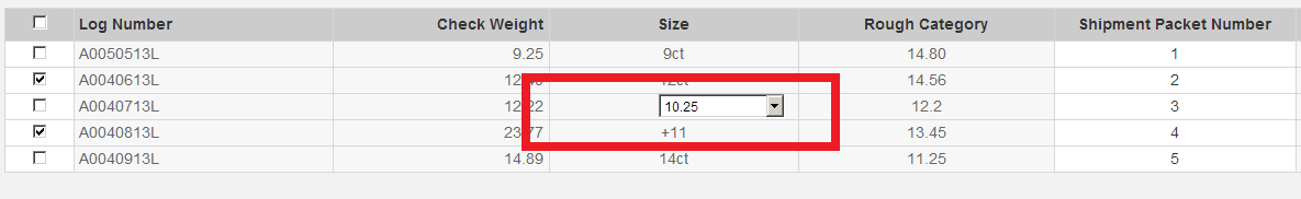 I have attached an image for your refrence, from that you can see based "CheckWeight" column the "Size" column will be as ReadOnly or Editable with Dropdown list.