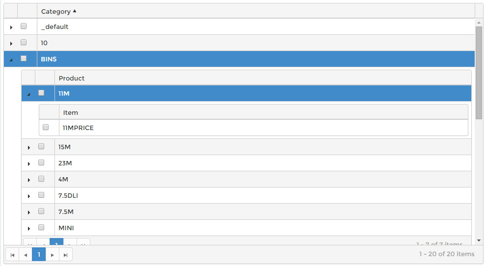 I need to check all the child checkboxes when I'll check the parent checkbox. For example, in the attached file I need to check all the checkboxes (11M, 11MPRICE, 15M, 23M....) when I'll click BINS. And another case is if all checkboxes are selected then parent checkbox should be checked automatically. How can I do these?
