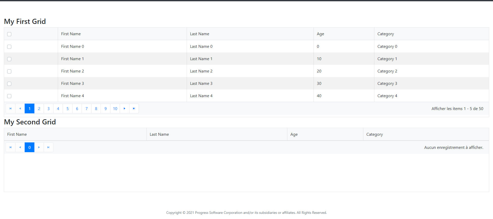 1- when I check one or more rows, these elements must be displayed in the second (while keeping these elements in the first grid)