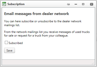 <telerik:RadAjaxPanel ID="RadAjaxPanel1" runat="server"> <telerik:RadWindow ID="modalPopup" runat="server" Width="400px" Height="275px" Title="Subscription" Modal="true"> <ContentTemplate> <div style="padding: 0 8px 8px 8px;"> <h2>Email messages from dealer network</h2> <p>You can here subscribe or unsubscribe to the dealer network mailings list.</p> <p>From the network mailings list you receive messages of used trucks for sale or request for a truck from your colleague.</p> <p> <asp:CheckBox Text="Subscribed" runat="server" ID="cbSubscribed" /> </p> <p> <telerik:RadButton ID="buSaveSubscribtion" runat="server" Text="Save" OnClick="BuSaveSubscribtion_Click" /> </p> </div> </ContentTemplate> </telerik:RadWindow> </telerik:RadAjaxPanel>In the OnClick of the button I read out the value of the CheckBox.Checked: