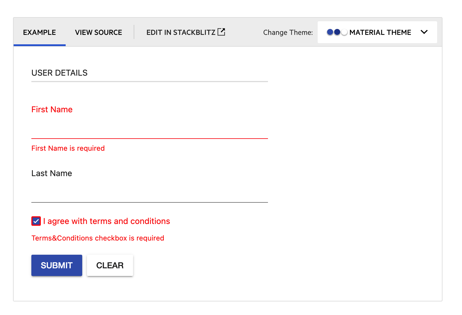 When I try to put a checkbox inside a form element the checkbox does not check and uncheck as expected. If I just use a Checkbox outside of a FormElement tag it works as expected. I noticed the first example on this page https://www.telerik.com/kendo-react-ui/components/inputs/checkbox/forms-support/ acts similarly to mine. Is this a known issue? Is there a working sample I could use?